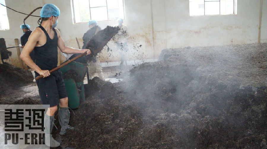 渥堆時,潮水量(灑水)視季節、茶箐級別與發酵程度而定,通常是茶量的30-50%左右,茶堆高度在一米左右。茶堆內部溫度最高攝氏65度左右,視制作地的溫濕度與通風情況來進行翻堆,使茶箐充分均勻發酵,若堆心、或萬一哪一次翻堆的時間沒掌握好,導致局部堆溫過高,那堆溫高的地方茶葉會出現過度發酵的狀況,失去了做原材料的價值。所以通常茶廠會制定二十四小時小組輪值制,發酵組對堆溫的監控是絲毫不放松的。