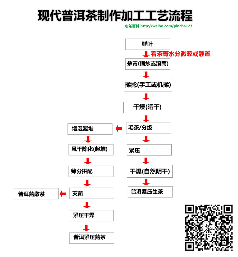 現代普洱茶制作加工流程圖: