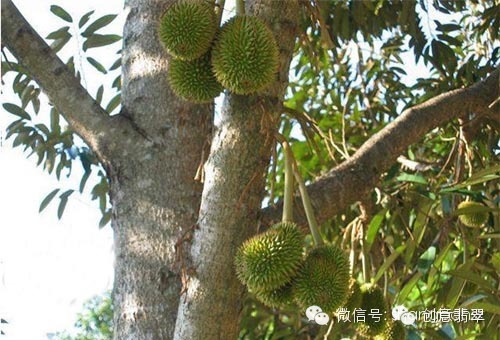榴莲,有人喜有人厌,但有一点可能大家都是一样的,就是没多少人见过榴莲是怎么长出来的,大搜集今天给大家分享一下榴莲的生长过程,给大家涨涨姿势啦。 榴莲,又名韶子、麝香猫果,台湾地区俗称“金枕头”。属木棉科热带落叶,乔木,树高15~20m,一般认为东印度和马来西亚是榴莲的原产地,以后传入菲律宾、斯里兰卡、泰国、越南和缅甸等国,中国海南也有少量栽种。 / @ Z% a2 o' n" C# c* V