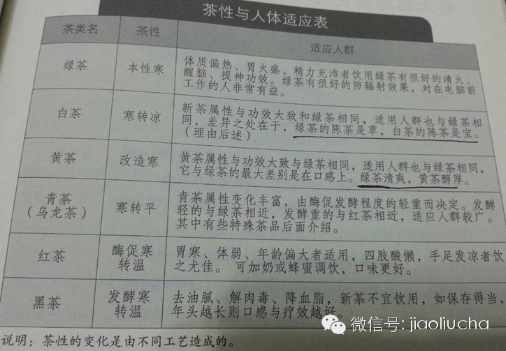 茶性與人體適應表